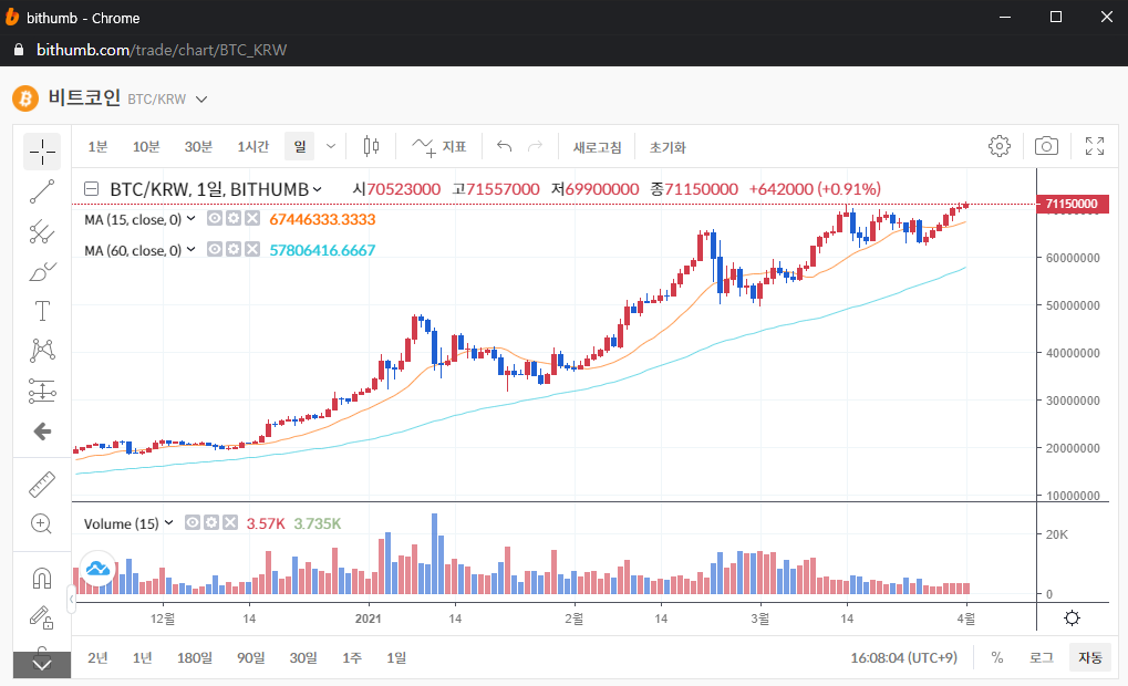 (2021년 4월 1일 빗썸 기준 비트코인 일봉)