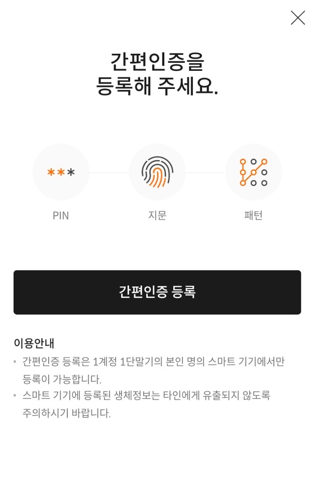 그럼 간편인증 안돼있는 사람은 간편인증 등록을 하라는 창이 뜸