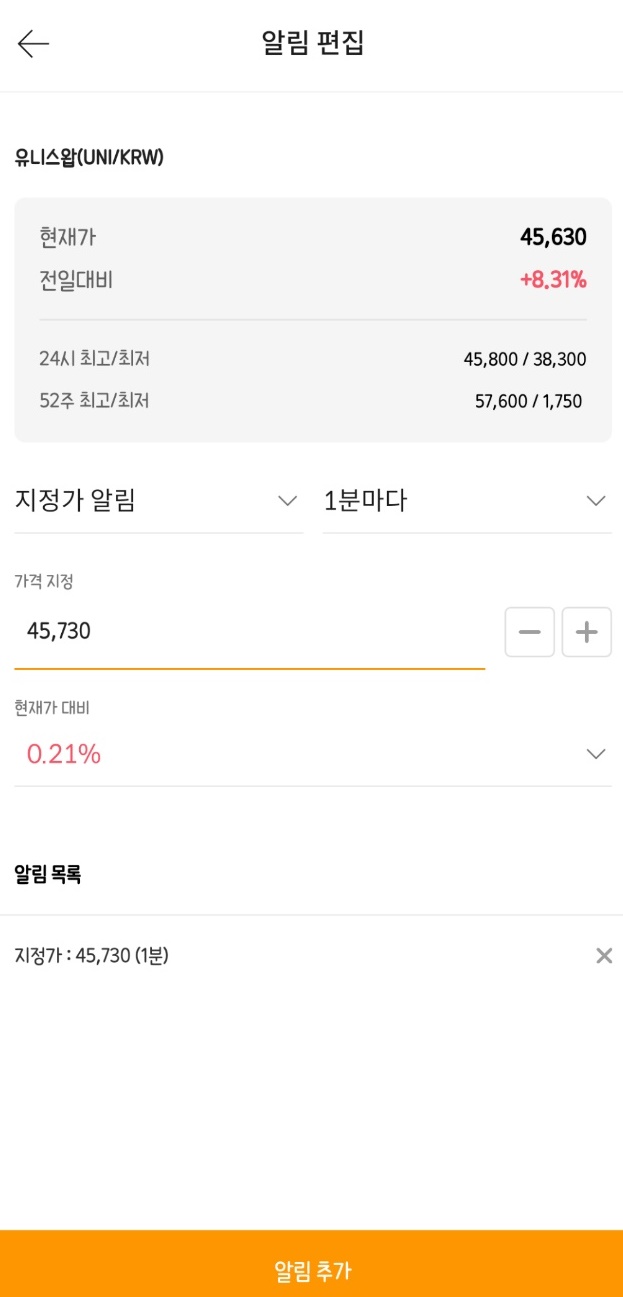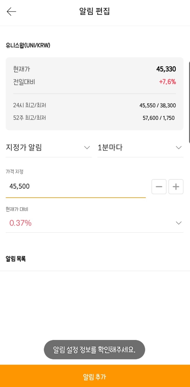 알림을 지정해 두고 싶은 코인에 들어가서