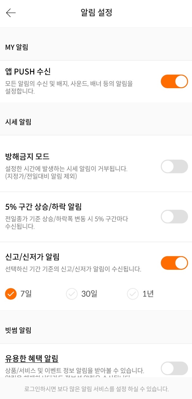 위 사진처럼 신고/신저가 알림만 켜놓으면